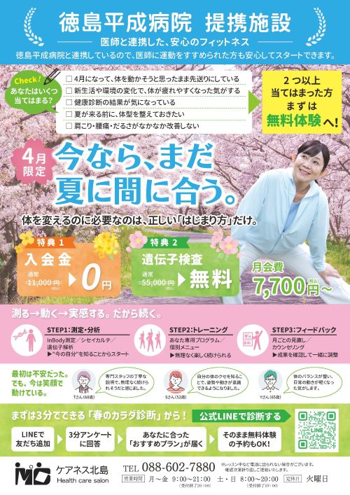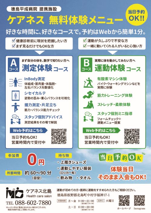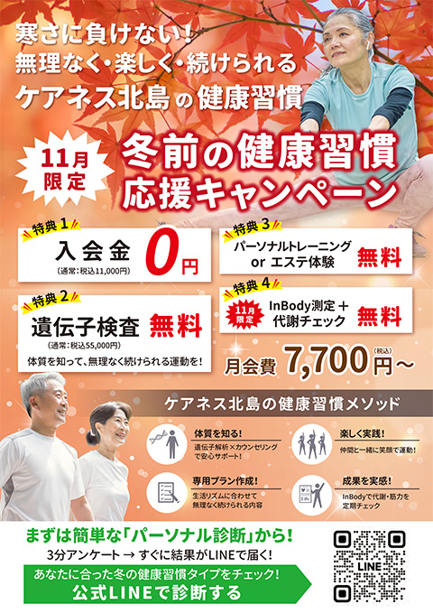 フィットスクラブ“ケアネス北島”で理想の健康を。