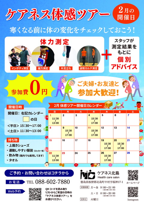 ケアネス北島は初回約60分程度の無料体験をいつでもご活用いただくことができます。